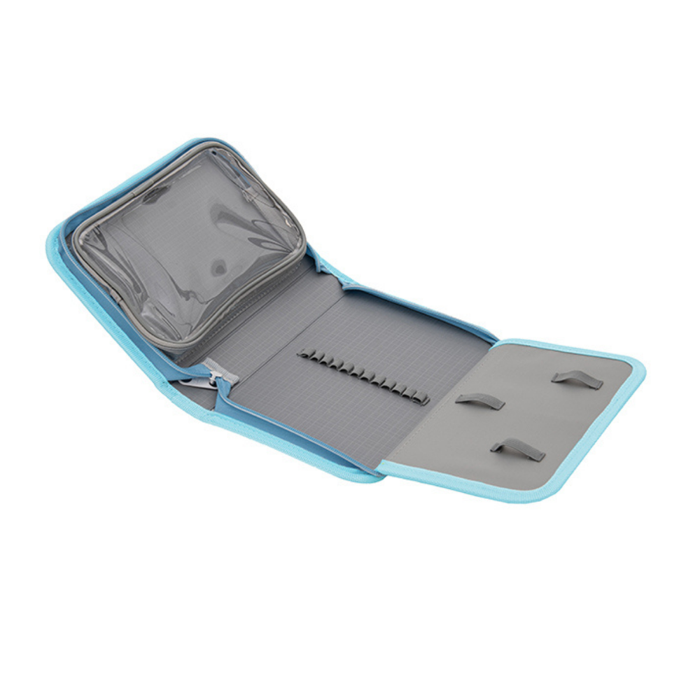 - Amplio bolsillo de PVC con cierre