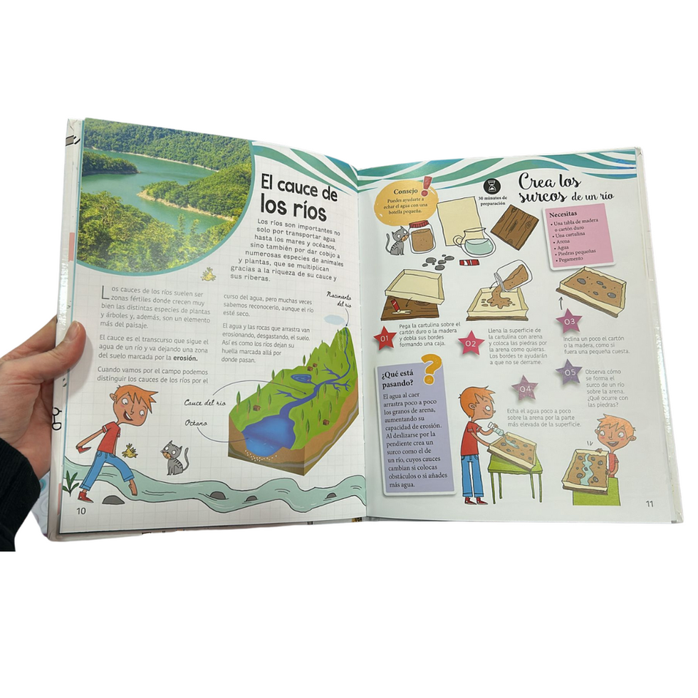 Atrévete a investigar las nubes, los ríos, mares y glaciares, a aprender de una vez por todas cómo funciona una brújula gracias al magnetismo del centro de la Tierra, por qué un volcán escupe fuego, cómo se forma un arcoíris o una estalactita, qué es el efecto invernadero o cómo respiran las plantas.