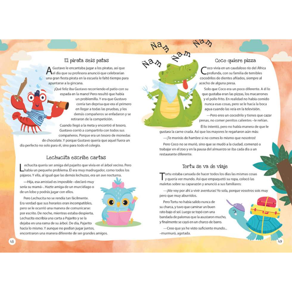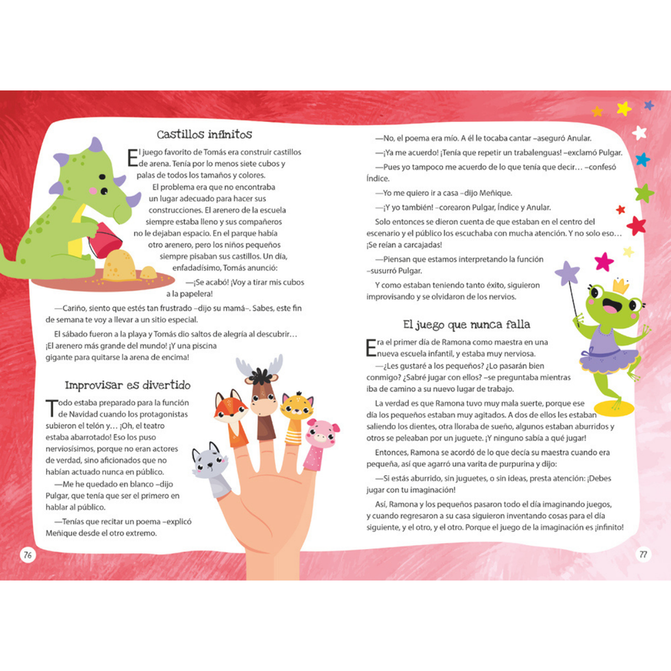 El precioso instante de leer un cuento es en sí mismo una ensoñación de la infancia en la que trasladarse a otros mundos sin moverse de este. Dentro de este libro hay historias con las que disfrutar, imaginar, jugar y divertirse, relatos para vivir aventuras, viajar, sorprenderse, relajarse e incluso para reír. Todo ello sin olvidar nunca que los cuentos también deben enseñar a los niños a compartir, a respetarse y a llevarse mejor con los demás.