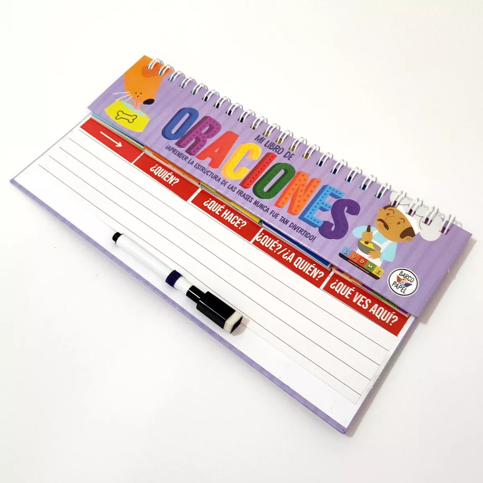 Mi libro de oraciones es una herramienta ideal para trabajar la estructura de la frase en edades tempranas. Se adecúa tanto para lectores como no lectores, ya que cada componente de la oración está acompañado de la ilustración correspondiente.
