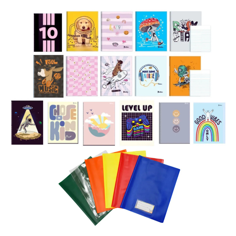 Pack x10 Cuadernos 96h + 10 Forros PVC