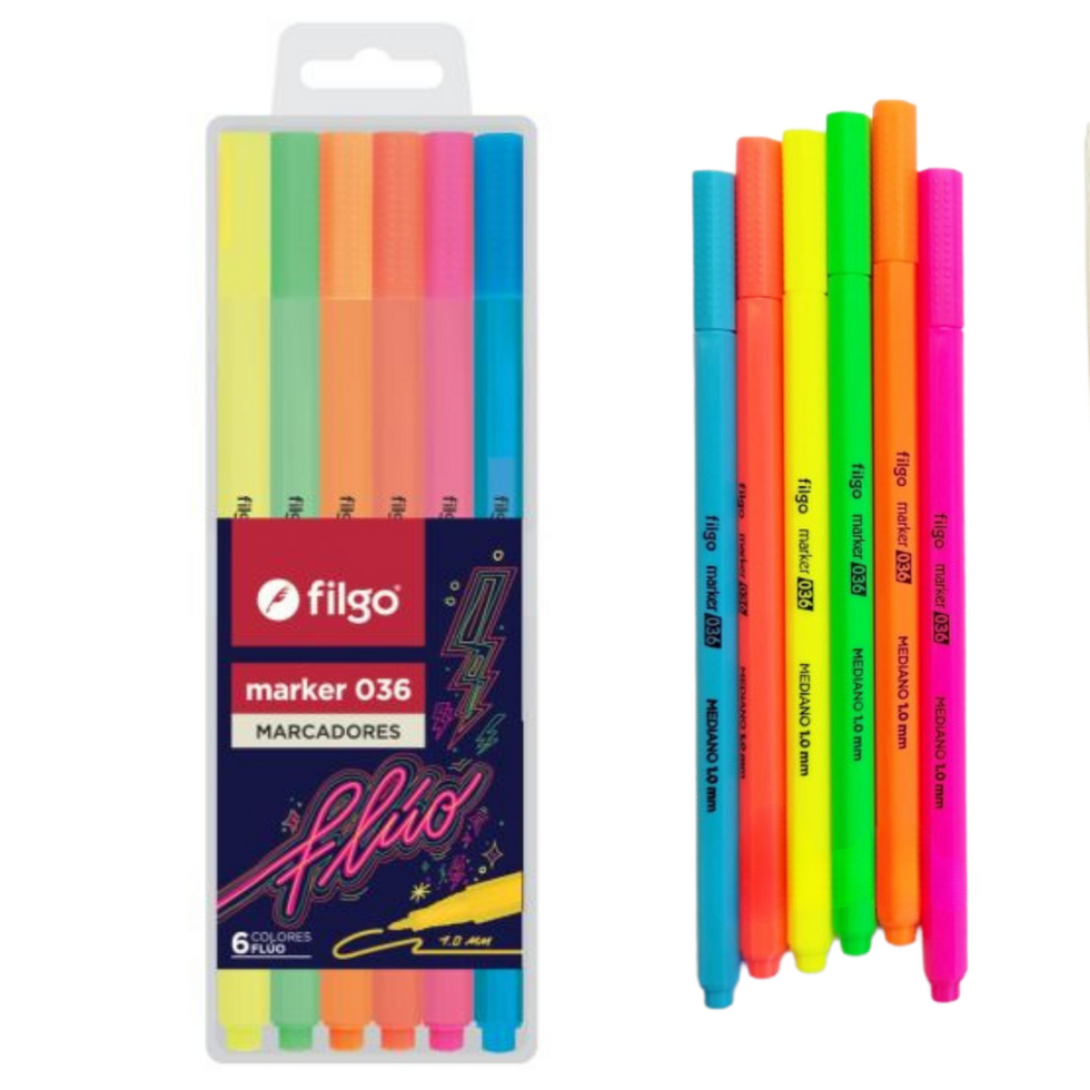 PACK 6 MARCADORES MARKER 036 - FLÚO