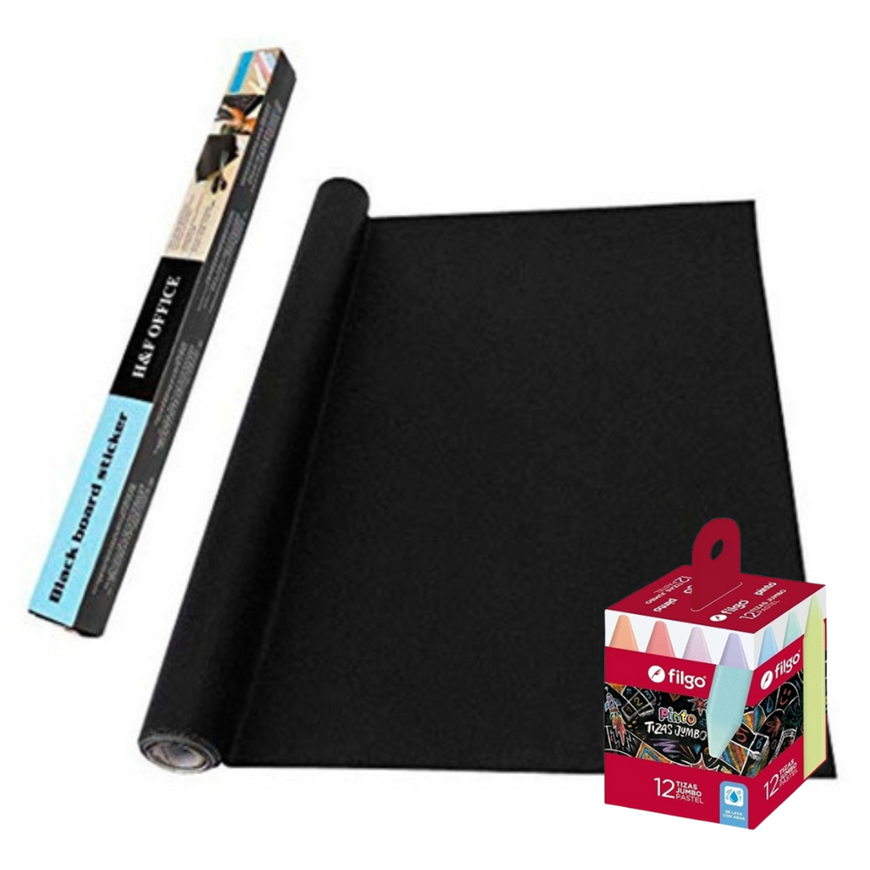 Pizarron Vinilo Autoadhesivo Negro + Tizas Jumbo