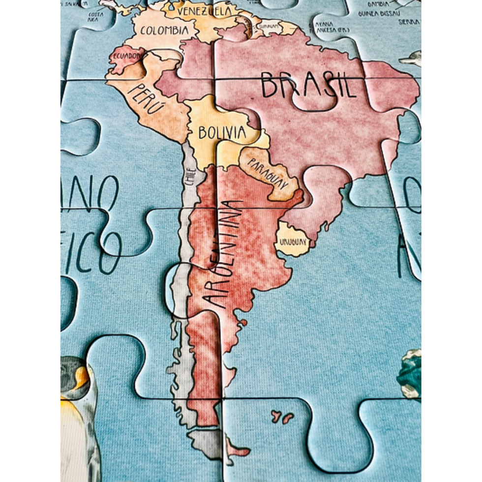 Un mapamundi colorido y educativo para explorar el mundo pieza a pieza.
