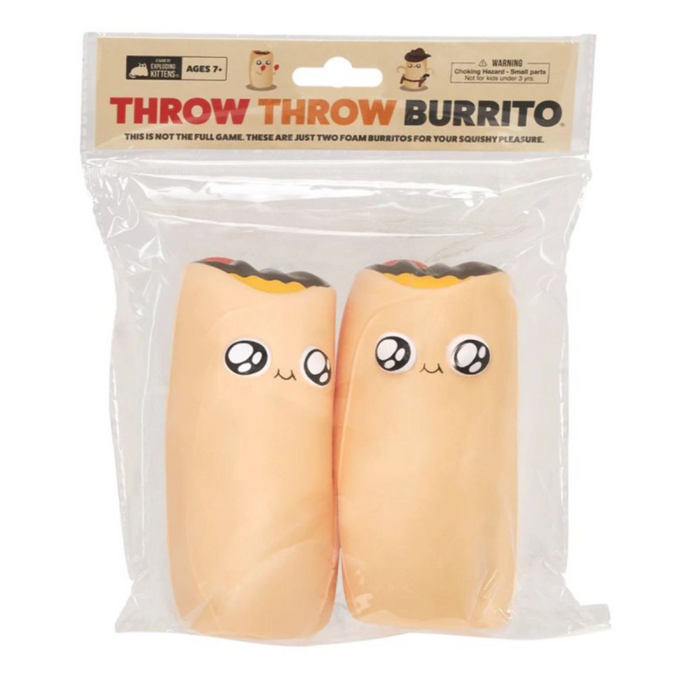 Throw Throw Burrito es un juego de mesa con el que lo vais a pasar en grande, tendrás que coleccionar cartas, jugar cartas iguales de tu mano y ¡tirarles burritos a tus amigos! La emoción del balón prisionero llevada a la mesa, y con burritos de por medio. Las cartas que recoges ganan puntos, pero si te golpean los burritos voladores, los pierdes. ¡Todos al ataqueee!