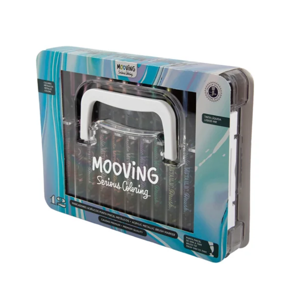 Valija x12 Marcadores Acrilicos Metalicos Punta Pincel - Mooving